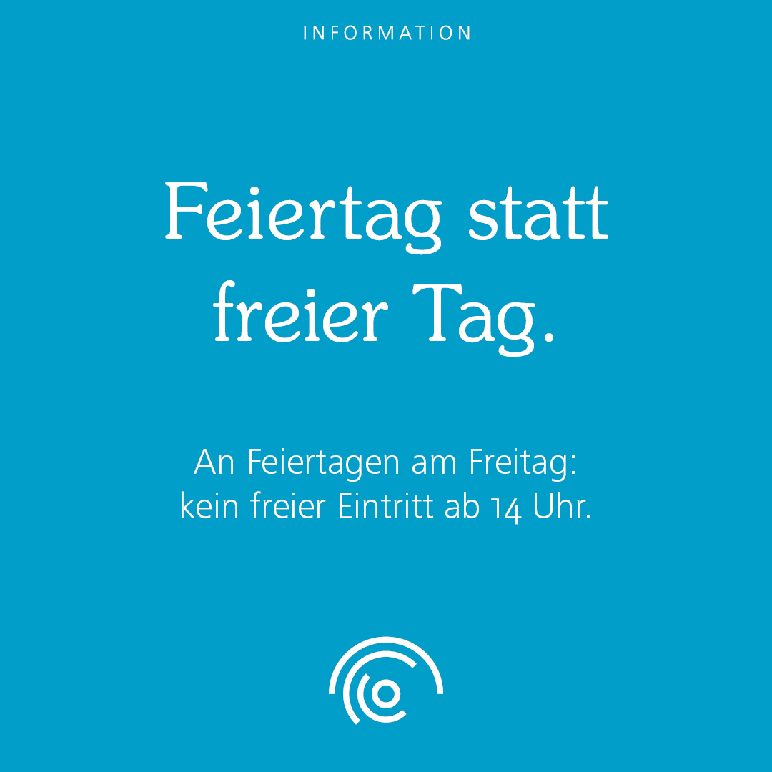 3. und 31. OktoberIn diesem Monat fallen gleich zwei Feiertage auf einen Freitag. Bitte beachten Sie, dass bei einem Besuch des WeltenMuseums am 3. und 31. Oktober der freie Eintritt von 14 bis 18 Uhr entfällt.