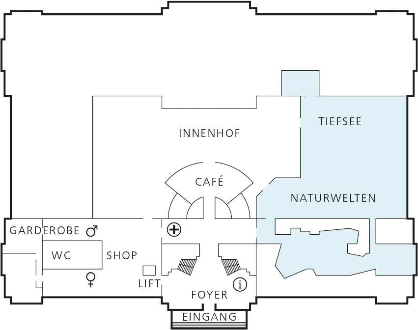 Ob Leguane, Blitze oder Dinosaurier – in den NaturWelten erleben Sie die einzigartige Verbindung von lebenden Tieren und naturkundlichen Präparaten. Vom Wasser an die Küste und ab in die Luft – so präsentiert sich die naturkundliche Dauerausstellung. Sie starten Ihre Reise in den blauen Weiten der WasserWelten. Über 200 Tierarten bewohnen die verschiedensten Lebensräume: kühle Nordsee, quirliger Amazonas oder farbenfrohe Südsee. Die Exponate sind dabei nicht nur auf Niedersachsen bezogen, sondern international verortet. Wichtige Urlaubsziele wie beispielsweise die Kanaren oder die Karibik werden in der Ausstellung ebenso thematisiert wie das Steinhuder Meer – und gemeinsam ausgeleuchtet. Damit ergeben sich andere Blickwinkel auf die Lebenswelt der Niedersachsen und immer wieder erstaunliche Bezüge zwischen vermeintlich verschiedenartigen Orten und Themen: Ein Blick in die Erdgeschichte zeigt, dass die klimatischen Bedingungen der heutigen tropischen Karibik in einer älteren, aber sehr ähnlichen Erscheinungsform im Oberjura schon einmal »hier vor Ort« herrschten! Daraus resultiert ein großer Vorteil für die Vermittlung: Erdgeschichtliche Aspekte werden unmittelbar mit denen der jetztzeitlichen Lebensräume kombiniert sowie beide mit der Fülle des aquaristisch-terraristischen Lebens. Hauptaugenmerk ist also eine intensive Verbindung aller naturkundlichen Facetten miteinander, wie sie auch im tatsächlichen Erscheinungsbild der Umwelt auf unserer Erde vorkommt.